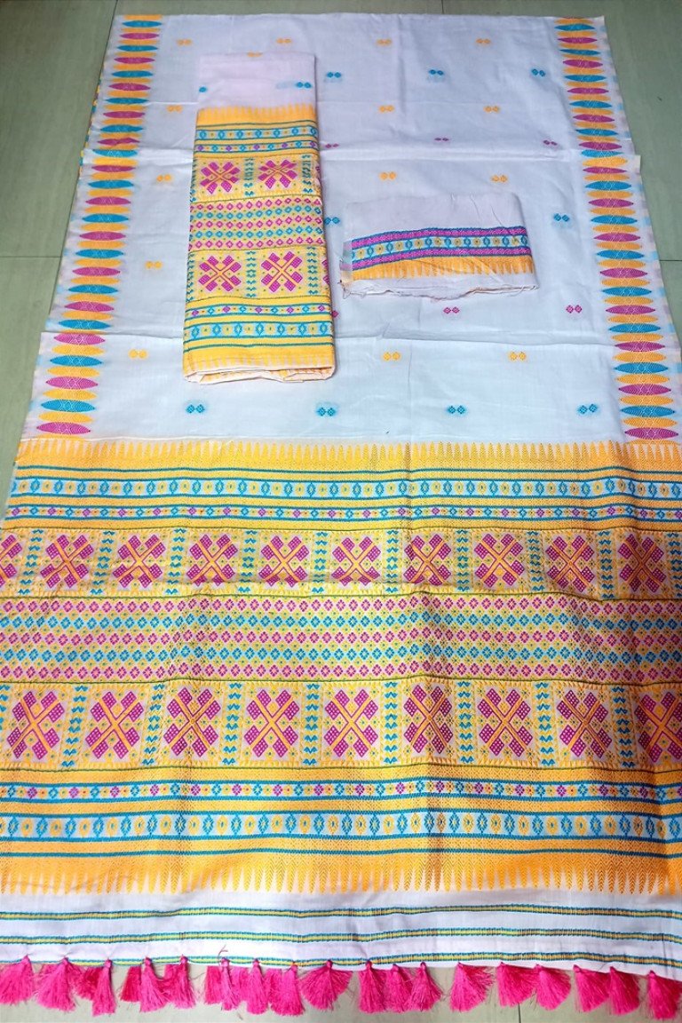 Ready To Wear Gaari Diya Cotton Mixed Mekhela Sador With Blouse Material /03350004001
