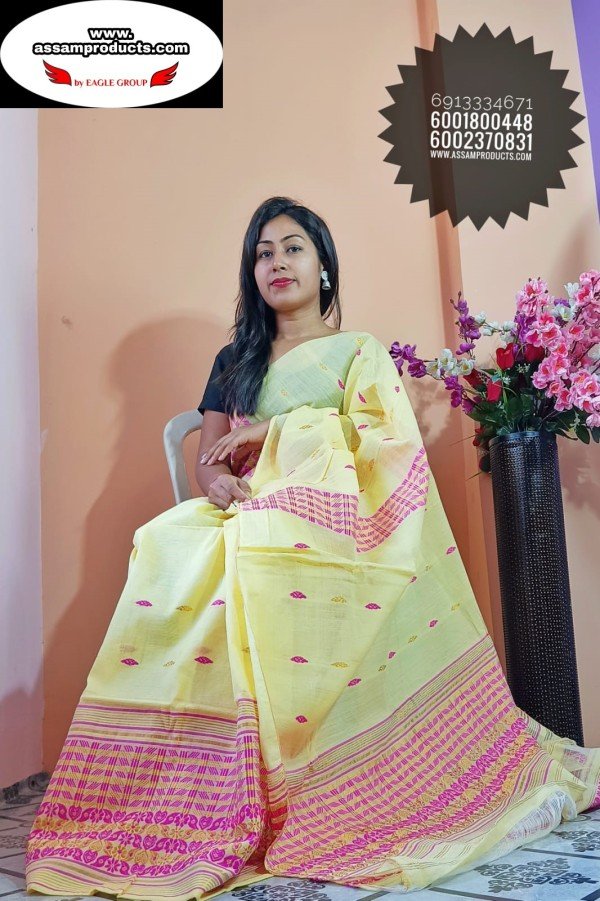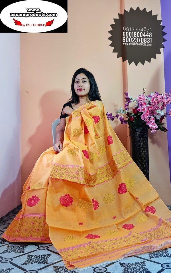 #Handloom Gamusa Designed Padmini Cotton Mekhela Sador /00220008001