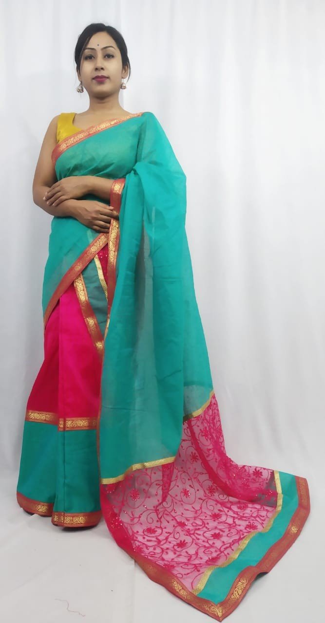 Eagle Ready To Wear Cotton & Net Mekhela Chadar With Blouse Material/00150004001