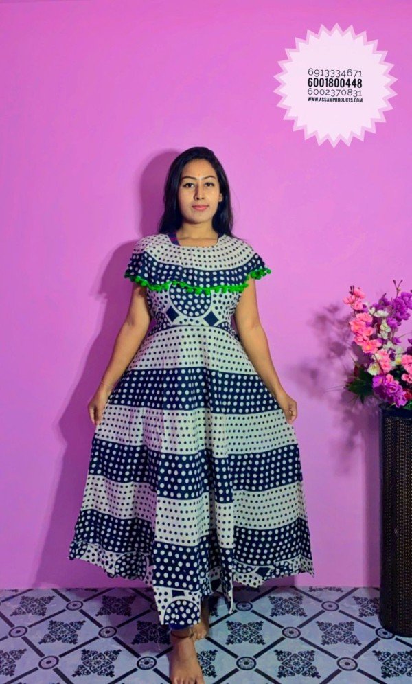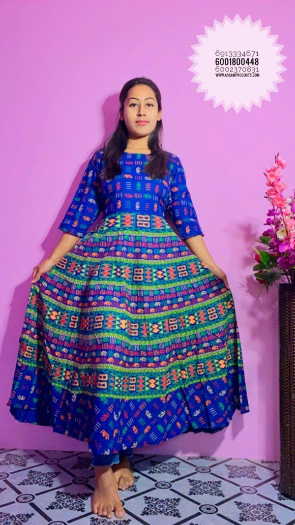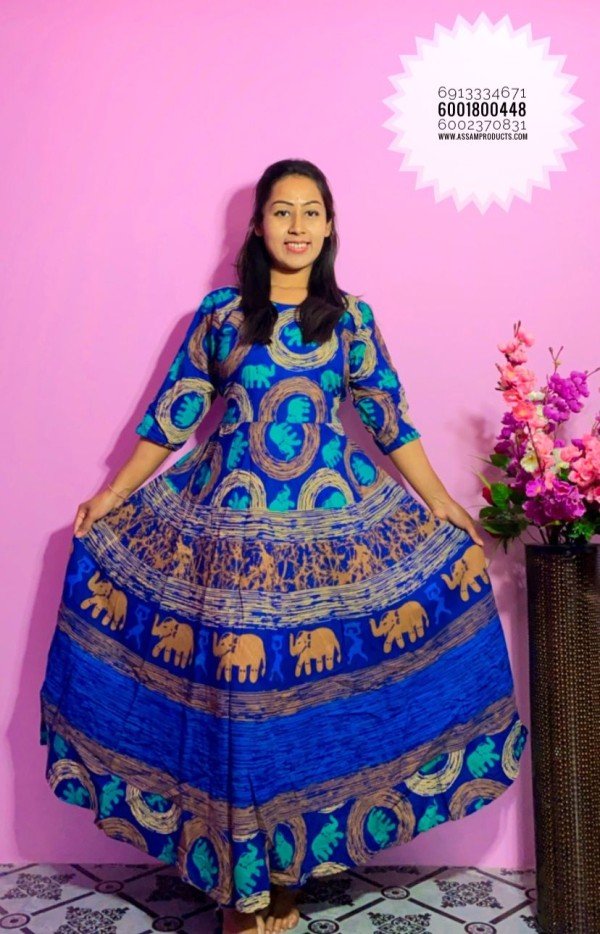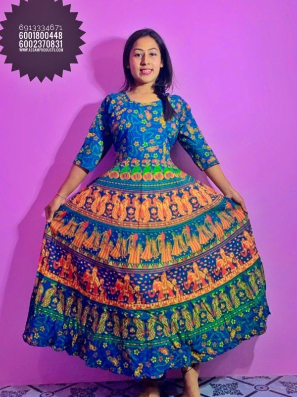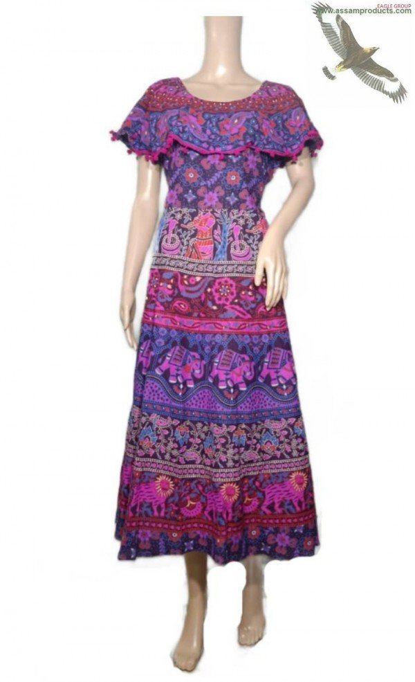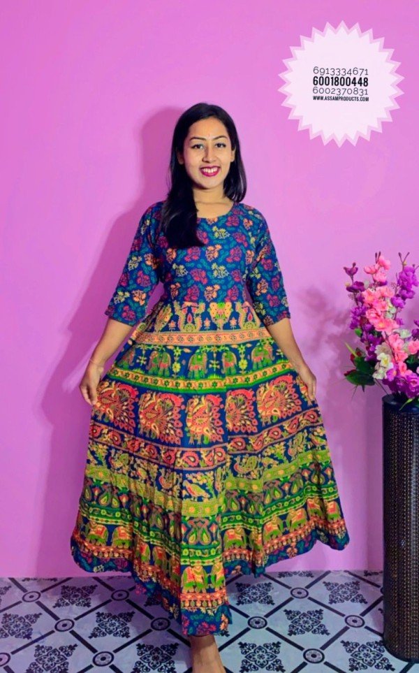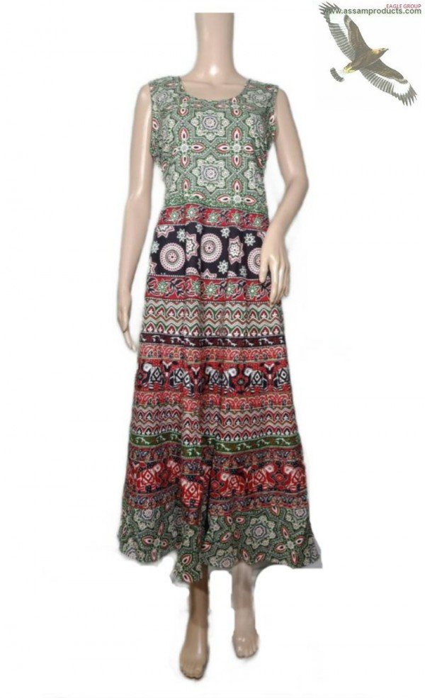 EAGLE TRADITION JAIPURI PRINT 100% COTTON COMFORT FREE SIZE LONG FROCK / 0105000B001PM10