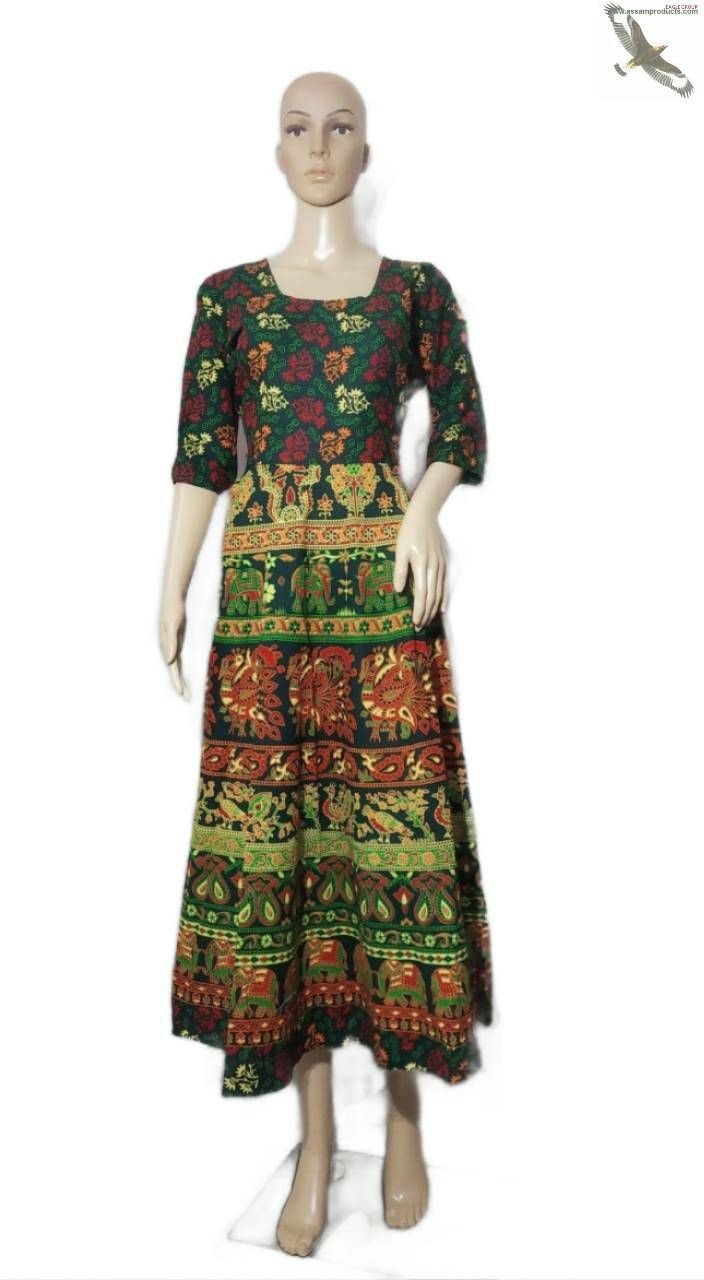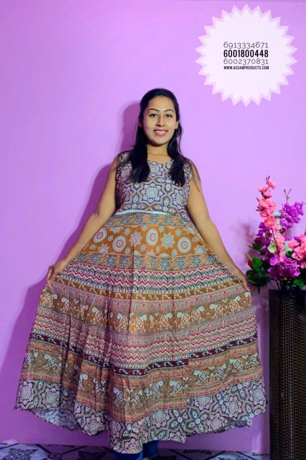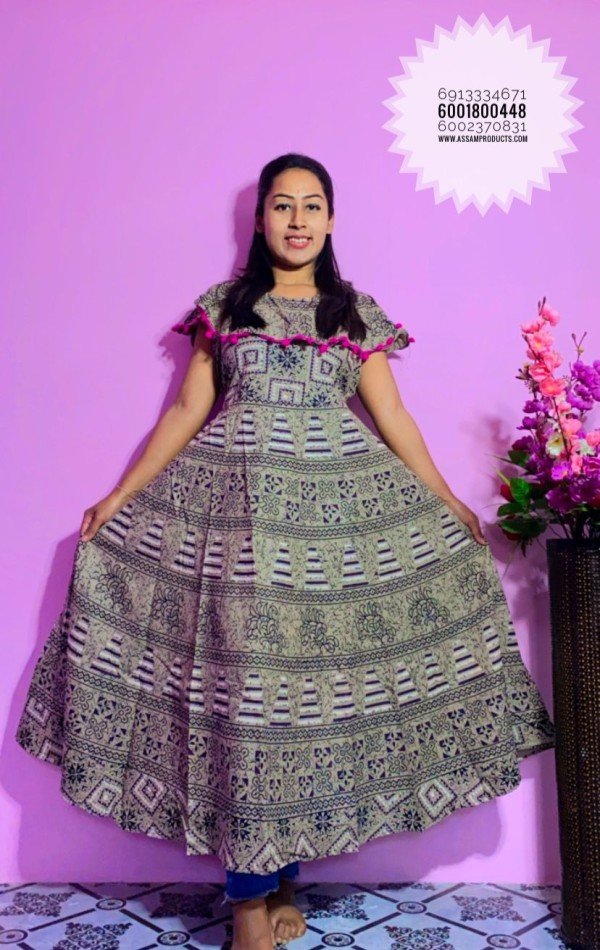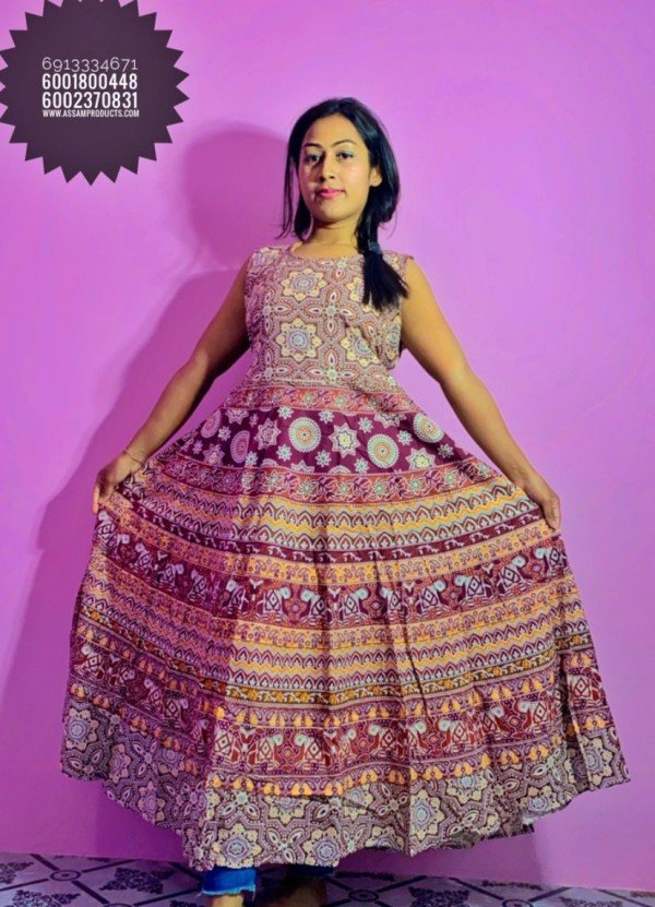EAGLE TRADITION JAIPURI PRINT 100% COTTON COMFORT FREE SIZE LONG FROCK / 0105000B001PM8