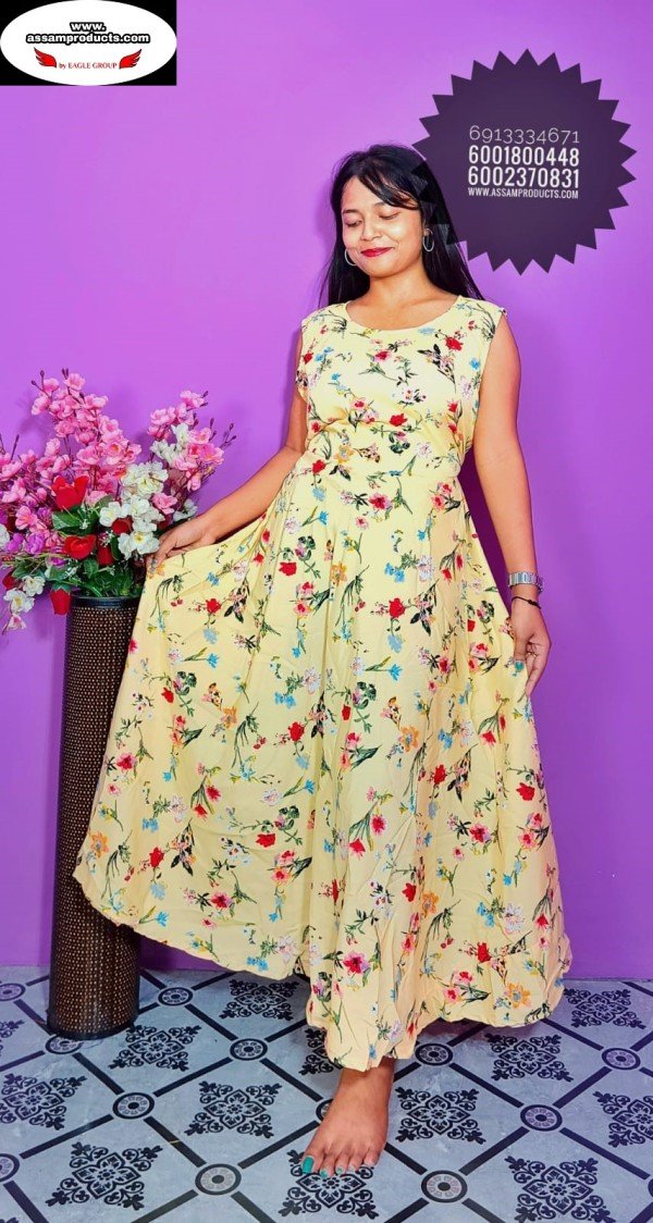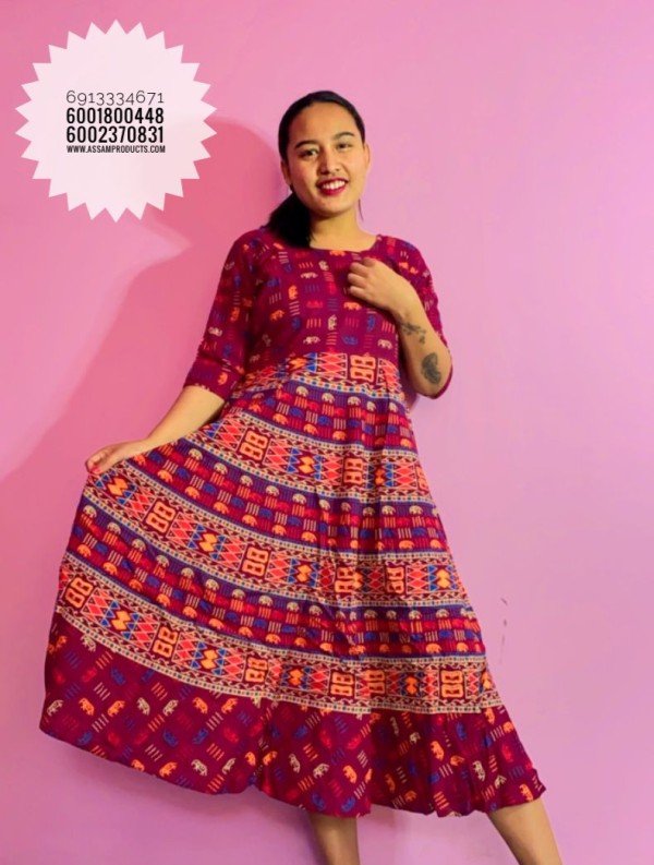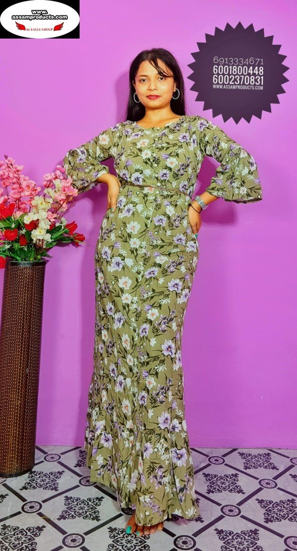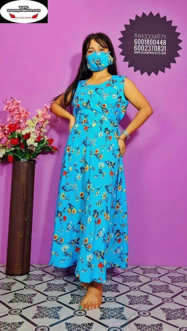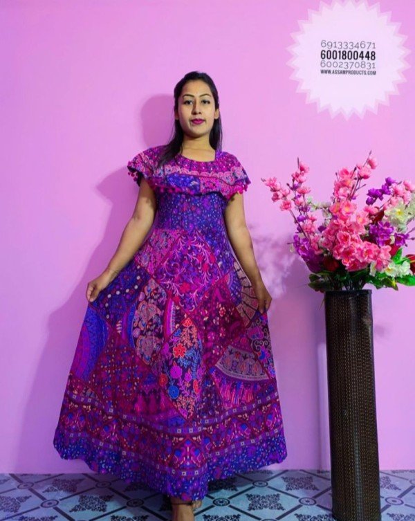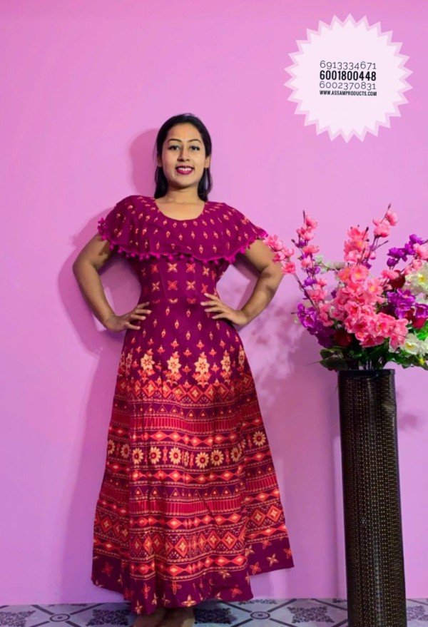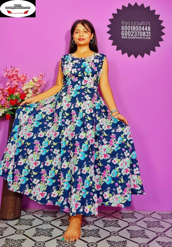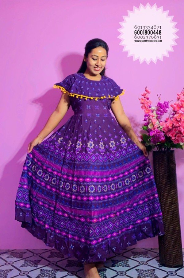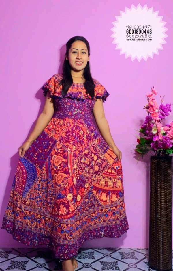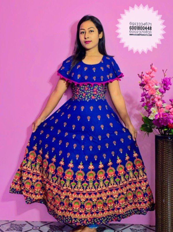 EAGLE TRADITION PRINTED COTTON COMFORT FREE SIZE LONG FROCK/PPM19
