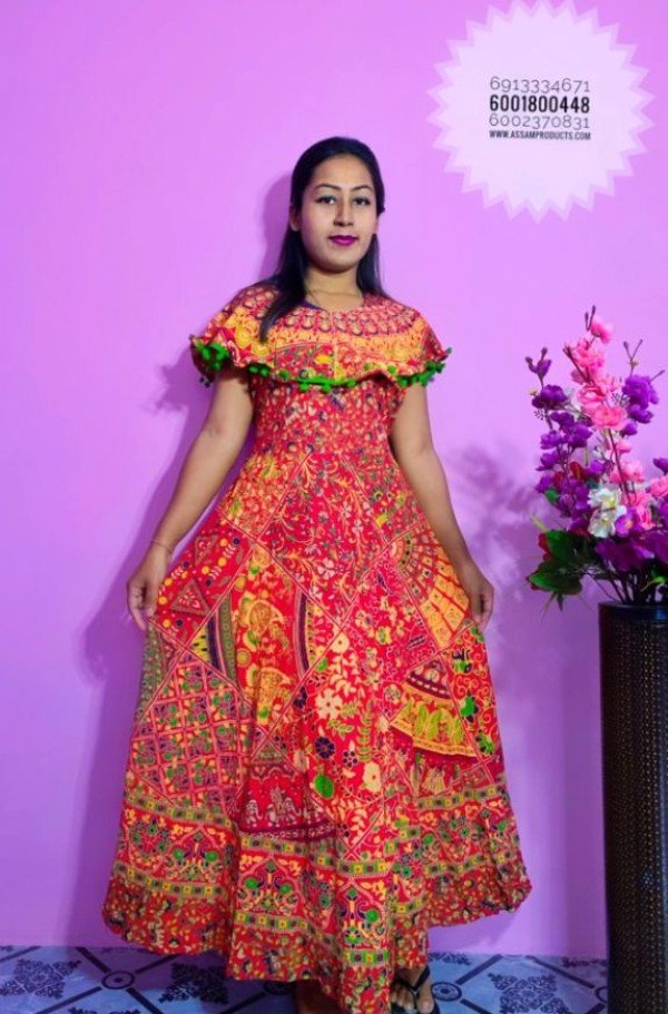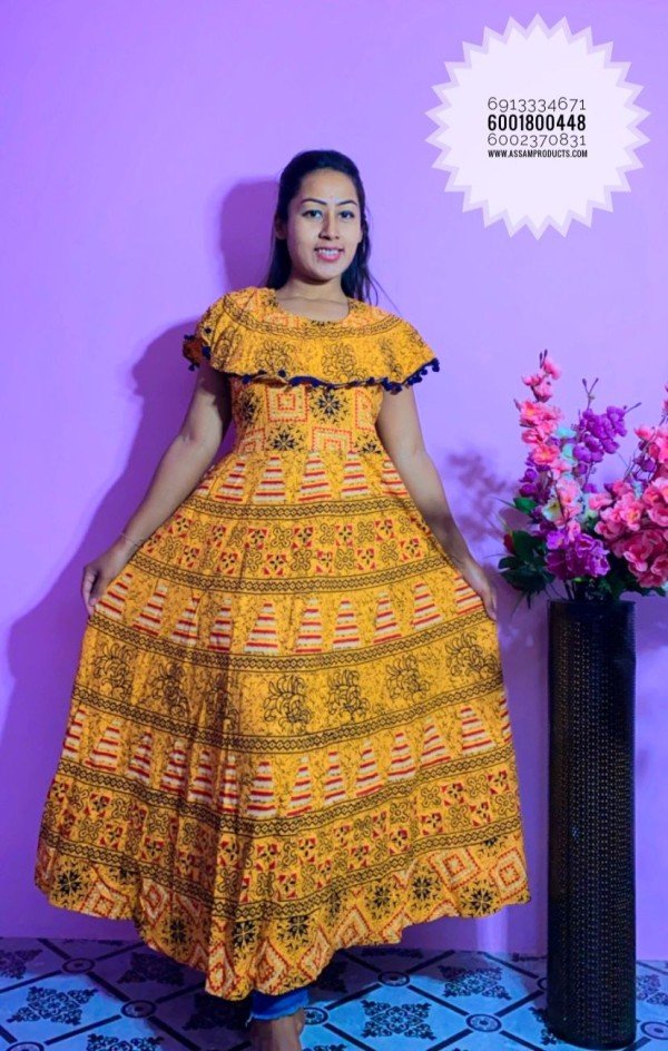 EAGLE TRADITION PRINTED COTTON COMFORT FREE SIZE LONG FROCK