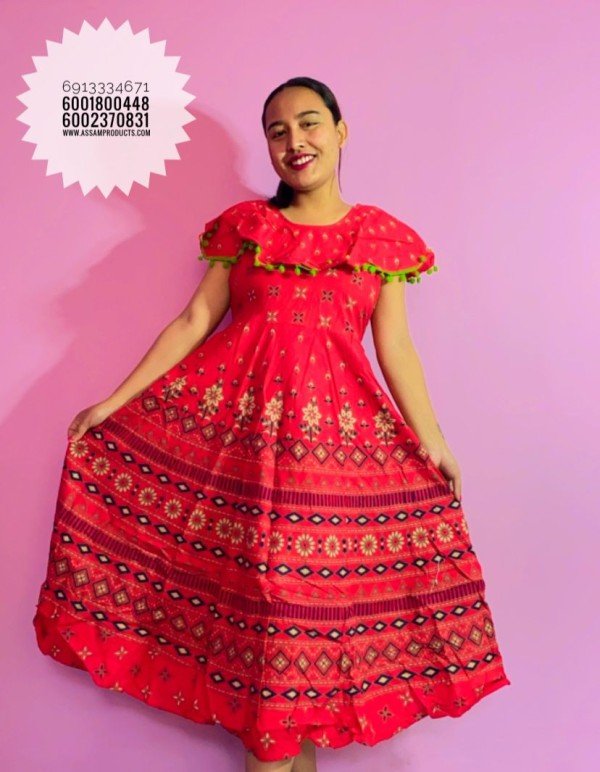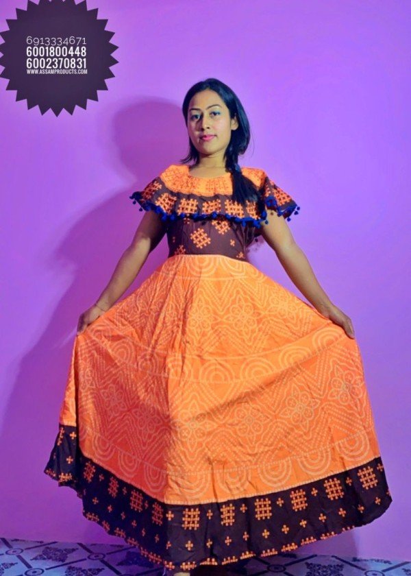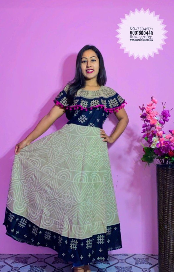#TRADITION PRINTED 100% COTTON COMFORT FREE SIZE LONG FROCK / 0105000A001