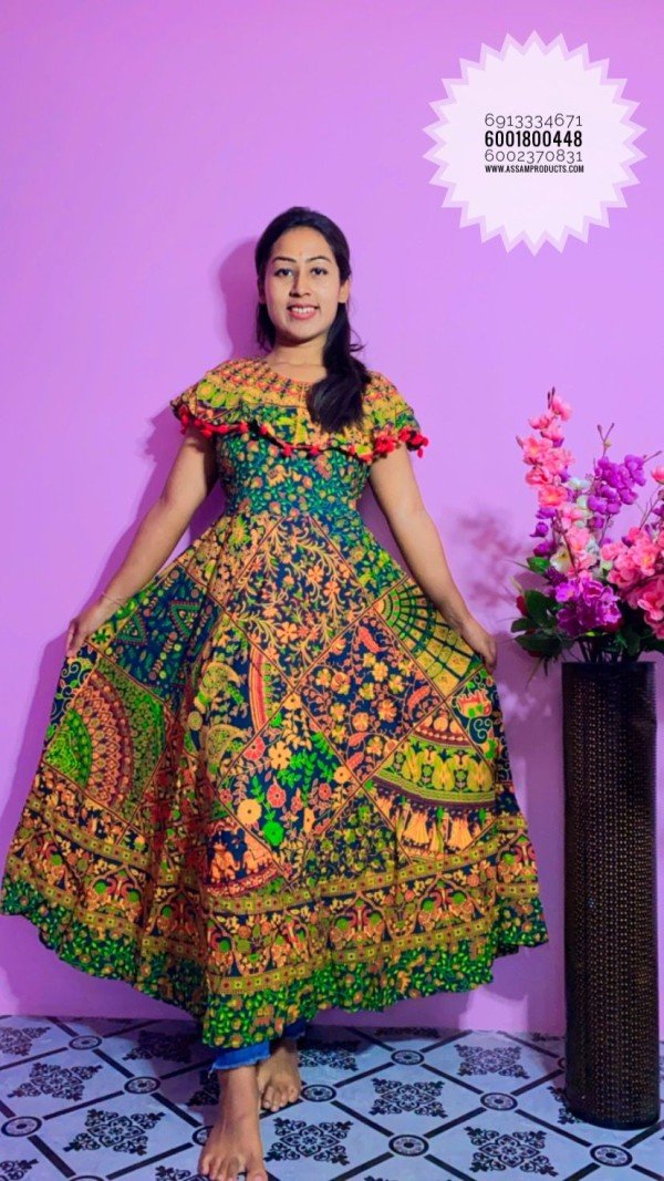 EAGLE TRADITION PRINTED COTTON COMFORT FREE SIZE LONG FROCK/PM20