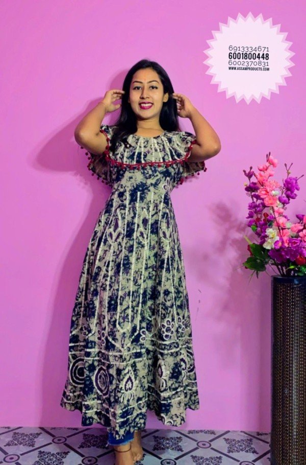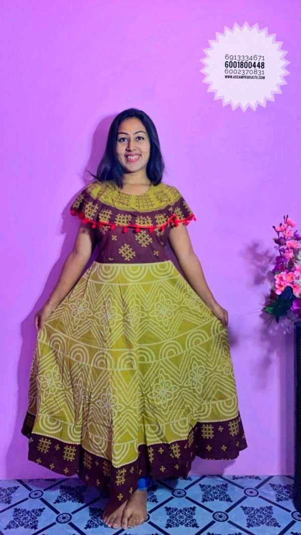 EAGLE TRADITION JAIPURI PRINT 100% COTTON COMFORT FREE SIZE LONG FROCK / 0105000B001