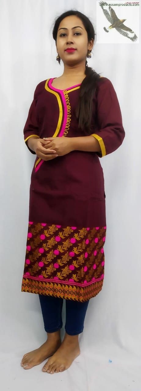 Eagle Handloom Cotton Blend Maroon Kurti/ 00400003001
