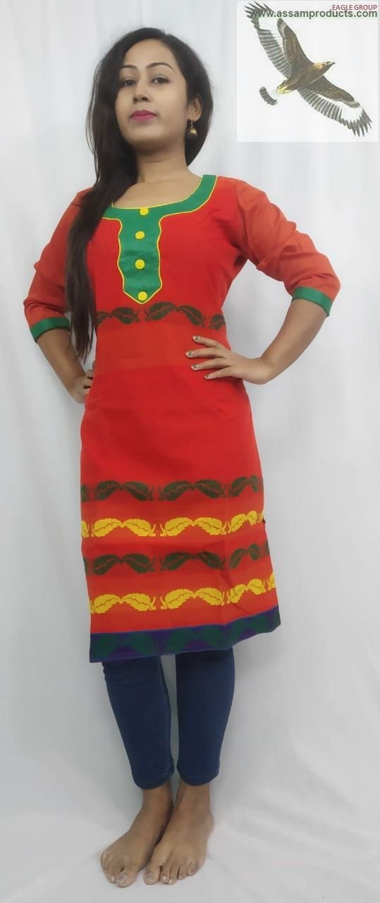 Eagle Handloom Cotton Blend Orange Kurti/ 00400005001
