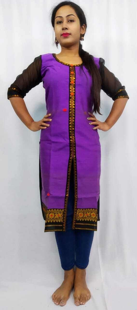 Eagle Handloom Cotton Blend Purple- Black Kurti/ 00400002001