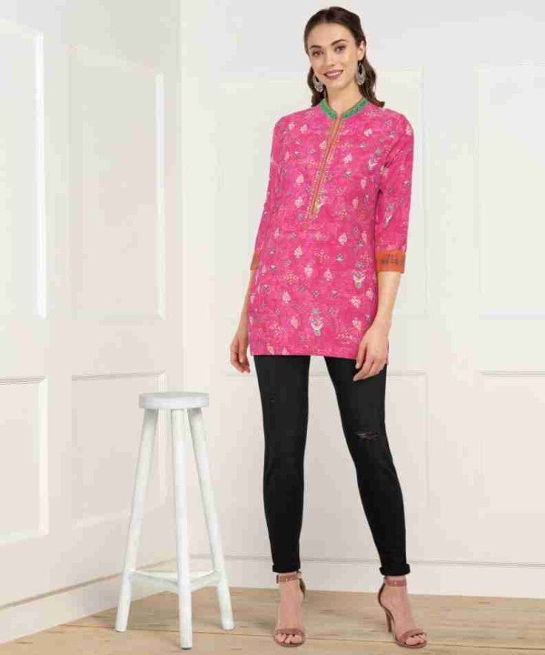 Biba Pink Colored Mixed Cotton Kurti/ 01060003001