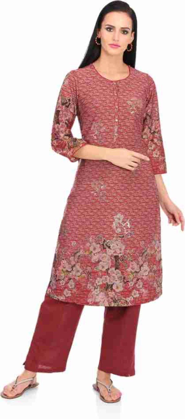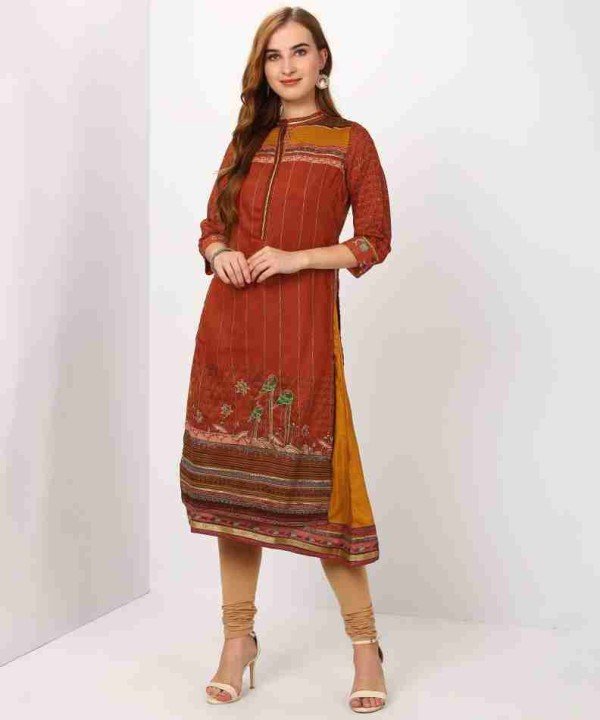 Biba Rayon Printed Rust Colored Straight Kurta/ 0106000E001