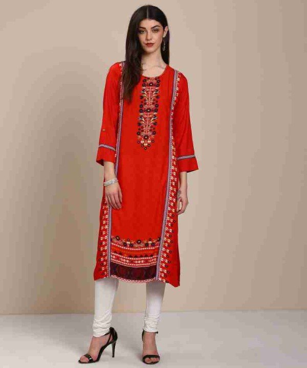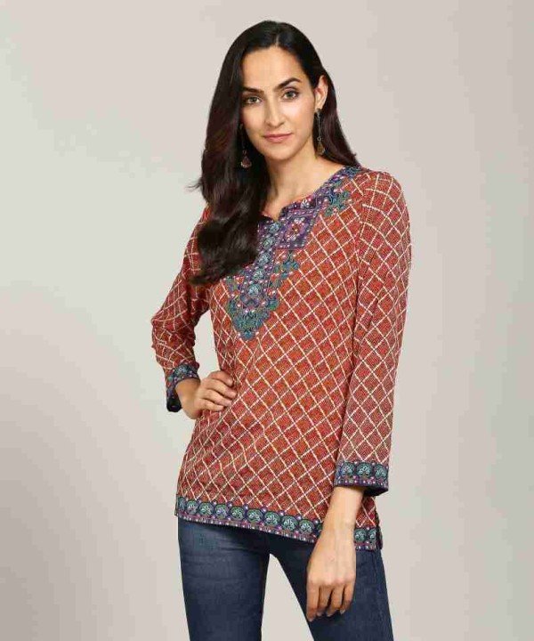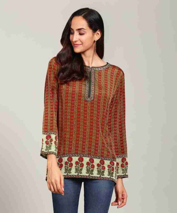 Biba Rust Red Colored Cotton Kurti / 01060002001