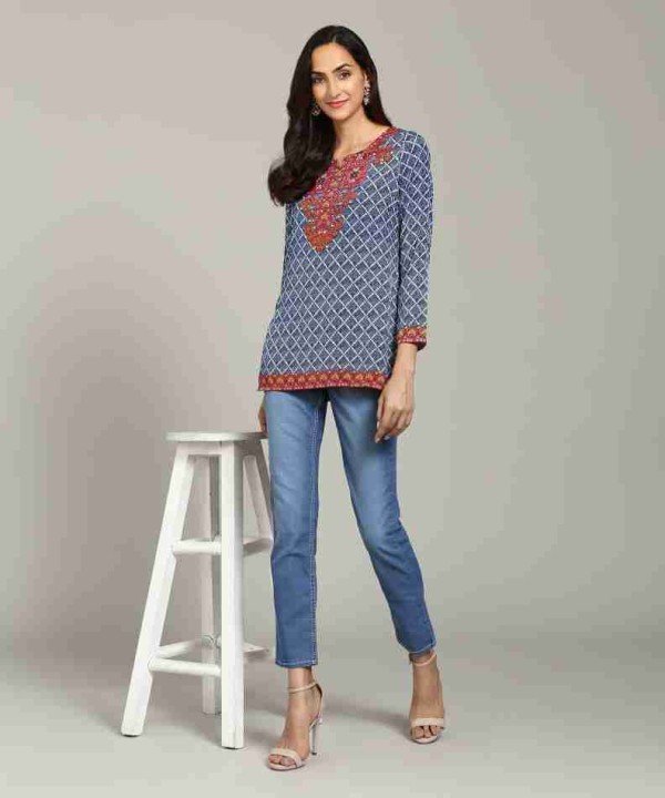 Biba Cotton Blend Blue Kurti / 01060002001