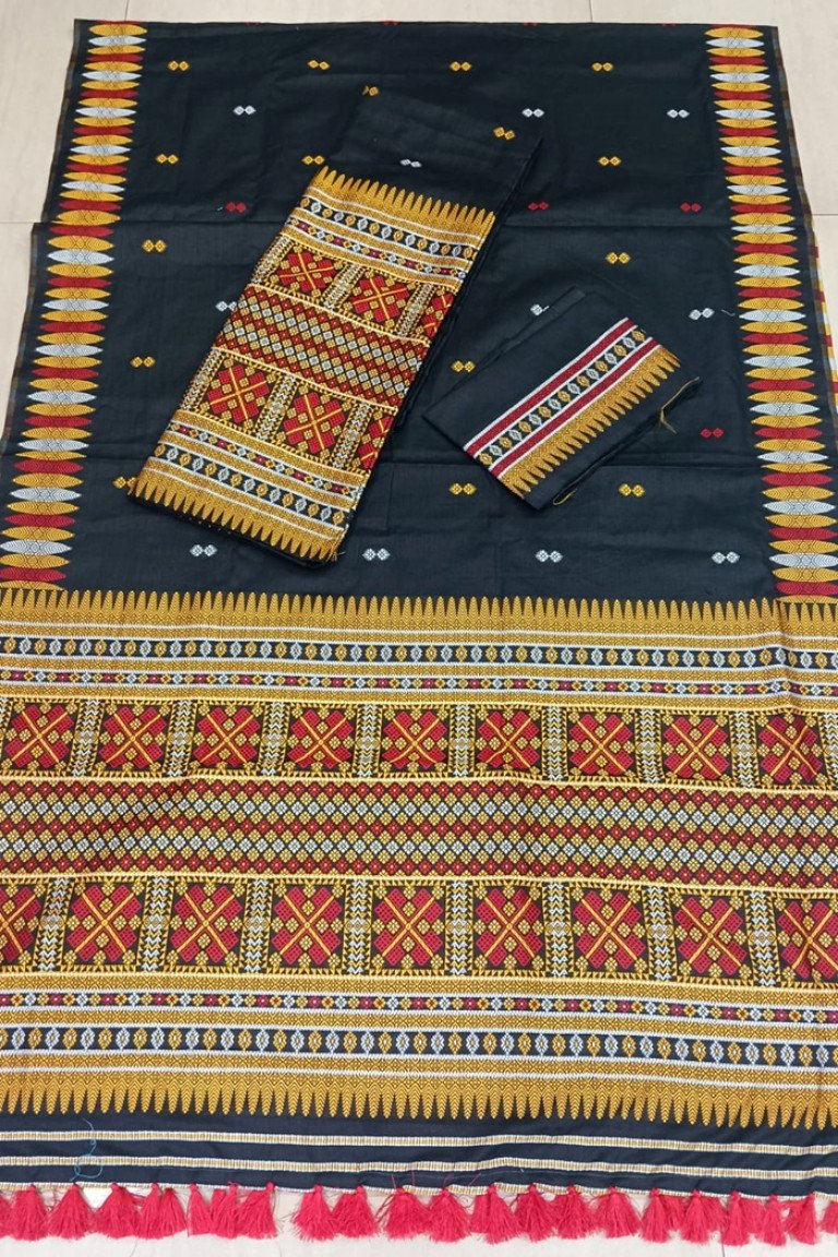 Ready To Wear Mishing Designed AC Cotton Mekhela Sador With Blouse Material / 0034001B001