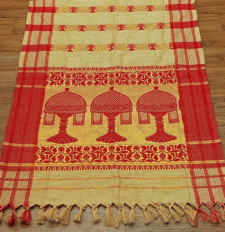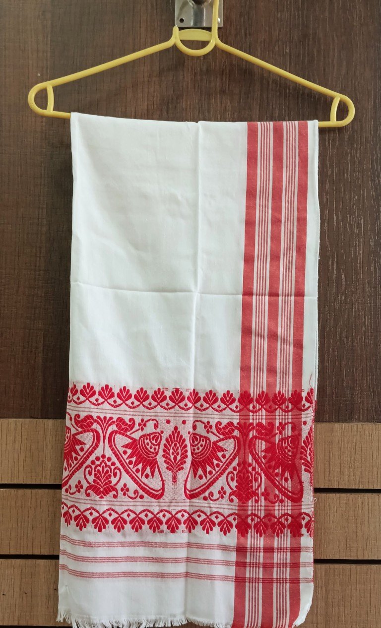 Assamese Traditional Gamosa || Gamusa for Bihu || Lightweight,Multi-Purpose Soft Absorbent Towel for Yoga, Gym, Travel, and Sports / 0084000F001